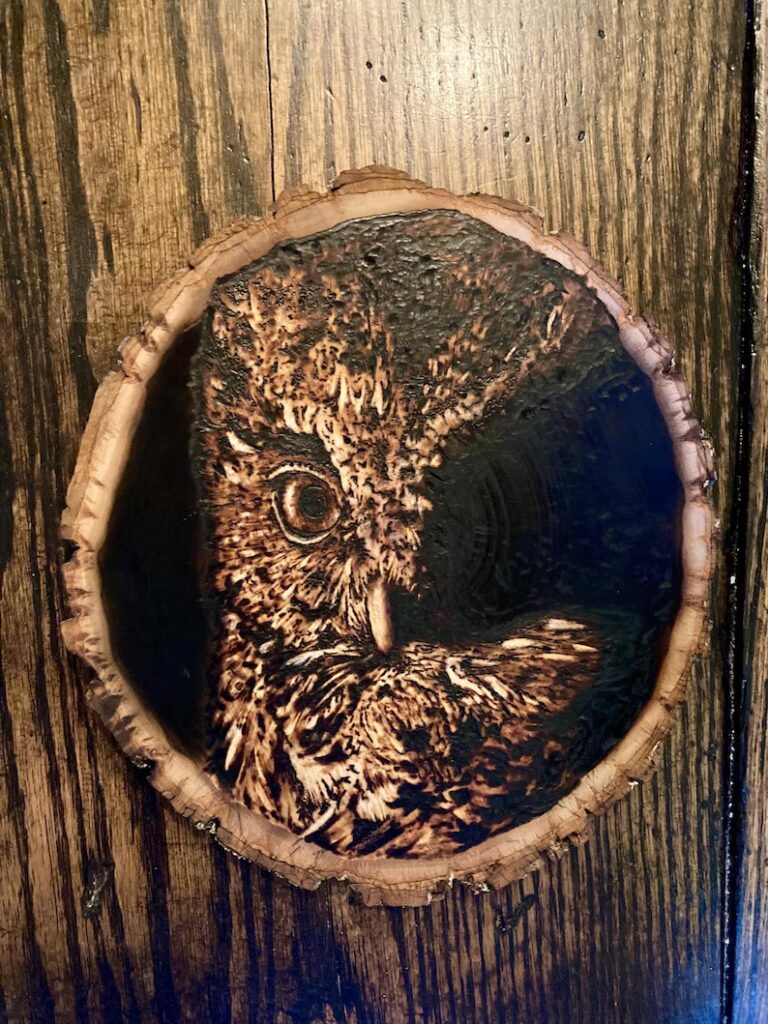 I’ve been dabbling in pyrography for a few years, but recently decided to pursue it more seriously. I have an Etsy store under the name Wooden Antler Studio where I sell some of my work. As with Vials of Wrath, it’s nature-oriented art that is burned into various woods using specific tools and techniques. So far it’s been mostly animals and nature scenes, but I hope to expand to other similar subjects in the future. Being a resident of the Smoky Mountains area, I’m sure I won’t run out of reference material any time soon.