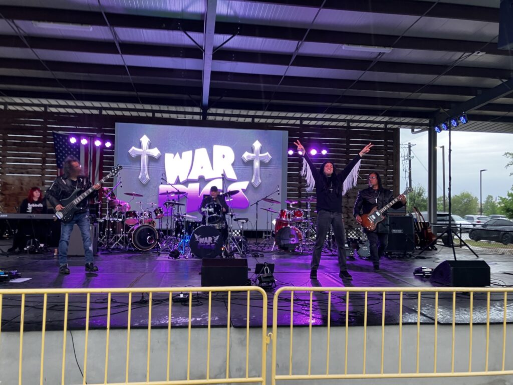 Opening the show was a Black Sabbath tribute band from the area called War Pigs. The weather couldn’t have been more perfect (especially if they would’ve opened with the self-titled track from the band’s debut album. With a long-haired and fringe-sleeved shirt, the young Ozzy lookalike kept the energy going with an appropriate visual. He’s definitely done his homework with all the leaning forward hand clapping and victorious double peace signs flashed at several moments. It was quite a full and fun show. What metalhead worth his historic salt would not relish in singing so many of Sabbath’s uber heavy riffs at full volume. It was quite a gas and the sound system mix was full-on rocking.